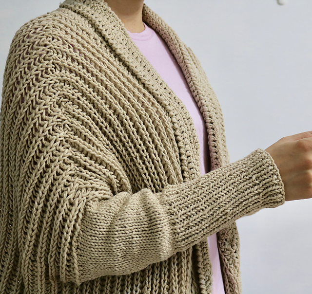分開前後之後,先織後片,織到差不多手腕寬度,就開始每段收一針,收到肩膀一半之後開始每段開頭收3針。