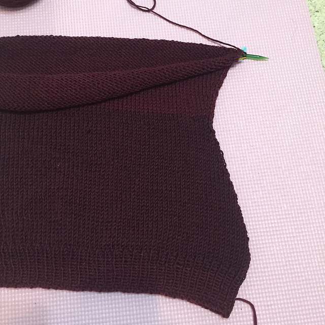 首先起針之1x1 rib,接下來因為蕾絲花樣太花時間,所以織了幾段之後就拆掉,改為brioche,身體部分無shaping直到袖口。