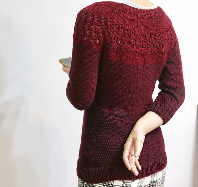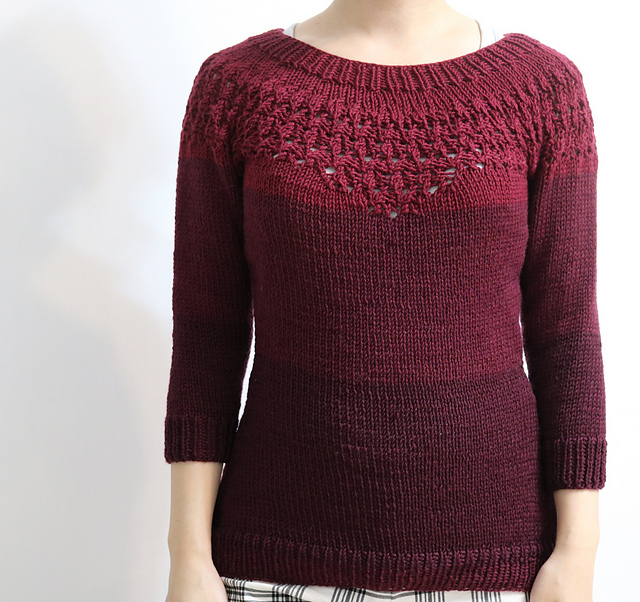 新試織的酒紅甜心毛衣,作者原本取的名字是夏日甜心Summer Sweetheart Sweater。